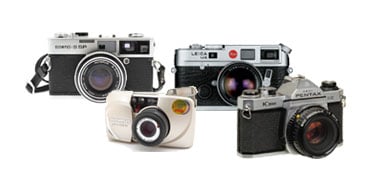 Popular 35mm camera brands include Canon, Nikon, Pentax, Olympus, and Leica.