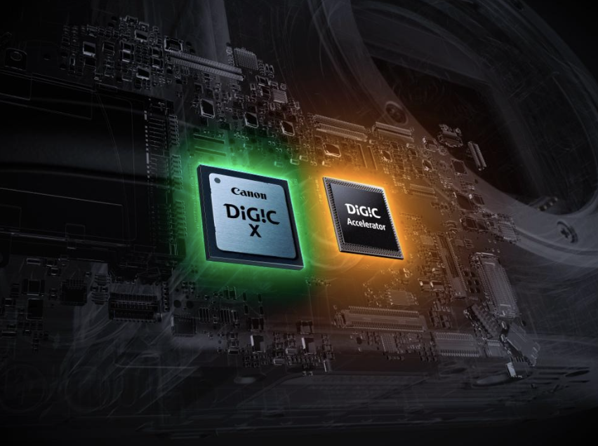 The DIGIC Accelerator processor is a completely new front-engine processor, developed by Canon to supplement the power of the proven DIGIC X processor. The DIGIC Accelerator handles the processing that makes so many of the new features of this camera possible, allowing the DIGIC X chip to focus solely on image processing, again contributing to incredible speed. The DIGIC Accelerator processes enormous volumes of data directly from the image sensor for actions like AF detection to exposure metering calculations that enable eye-control focus, subject identification and tracking, and even deep learning with features like In-camera Upscaling and Neural Network Noise Reduction.