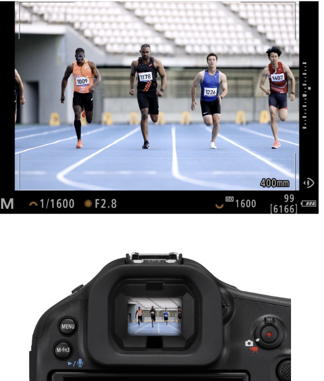 Thanks again to the increased camera processing power of the DIGIC Accelerator chip, we have developed a new AF mode called Action priority. This new focusing technology recognizes specific subject movements in selected sports, and automatically moves AF points to a player performing that motion — taking a shot, passing a ball, and so on. According to movement and other factors, it simplifies finding and keeping an active AF Area upon a subject about to perform a critical action, and it can really help get great sports pictures! This feature works with three sports at the moment, soccer, volleyball, and basketball. With Action priority the camera can recognize and track specific people and takes into account ball tracking, movement evaluation, and even multiple subjects in a scene at the same time, to help ensure you get the action shot you want when everything is moving so fast in front of your eyes. This Action Priority mode takes on even more power when you pair it with pre-continuous shooting. When enabled, pressing the shutter button halfway will start the pre-recording process, when you fully depress the shutter, the previous 1/2 -second of images will be written to the memory card (so up to 20 if the R1 is shooting at 40 fps), and will continue capturing images until you release the shutter button.