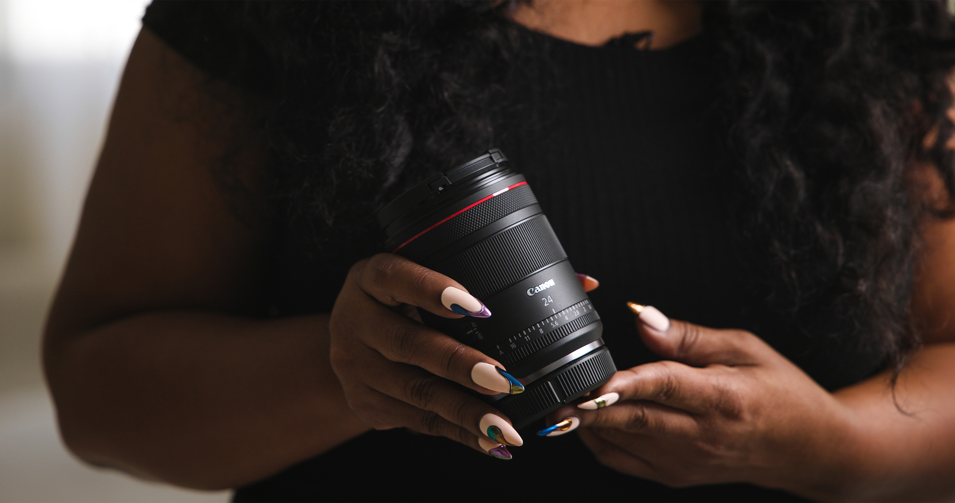 The RF24mm F1.4 L VCM is part of a series of “hybrid” lenses that focus on video performance as much as still photography. One of these new features is a change to how the focus system works. There is a Nano USM that controls the floating focus unit, and a VCM (Voice Coil Motor) that powers the rear focus unit. These focus motors work in tandem for incredible speed in near silence. One important note about the VCM is that it requires power to hold its position, so when the camera is off, or the lens is not attached to a camera, you may hear and feel slight movement. This is normal, and there is extra cushioning inside the lens to help prevent damage in this situation.