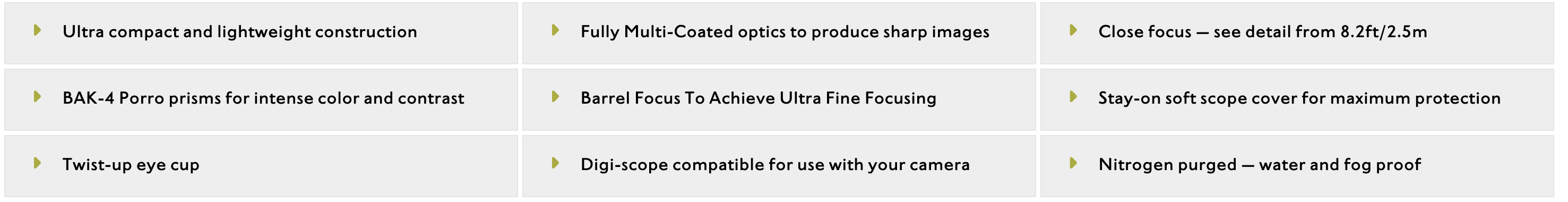 A Fully Multi-Coated optical system combined with BAK-4 Porro prisms produce extremely clear and sharp images.