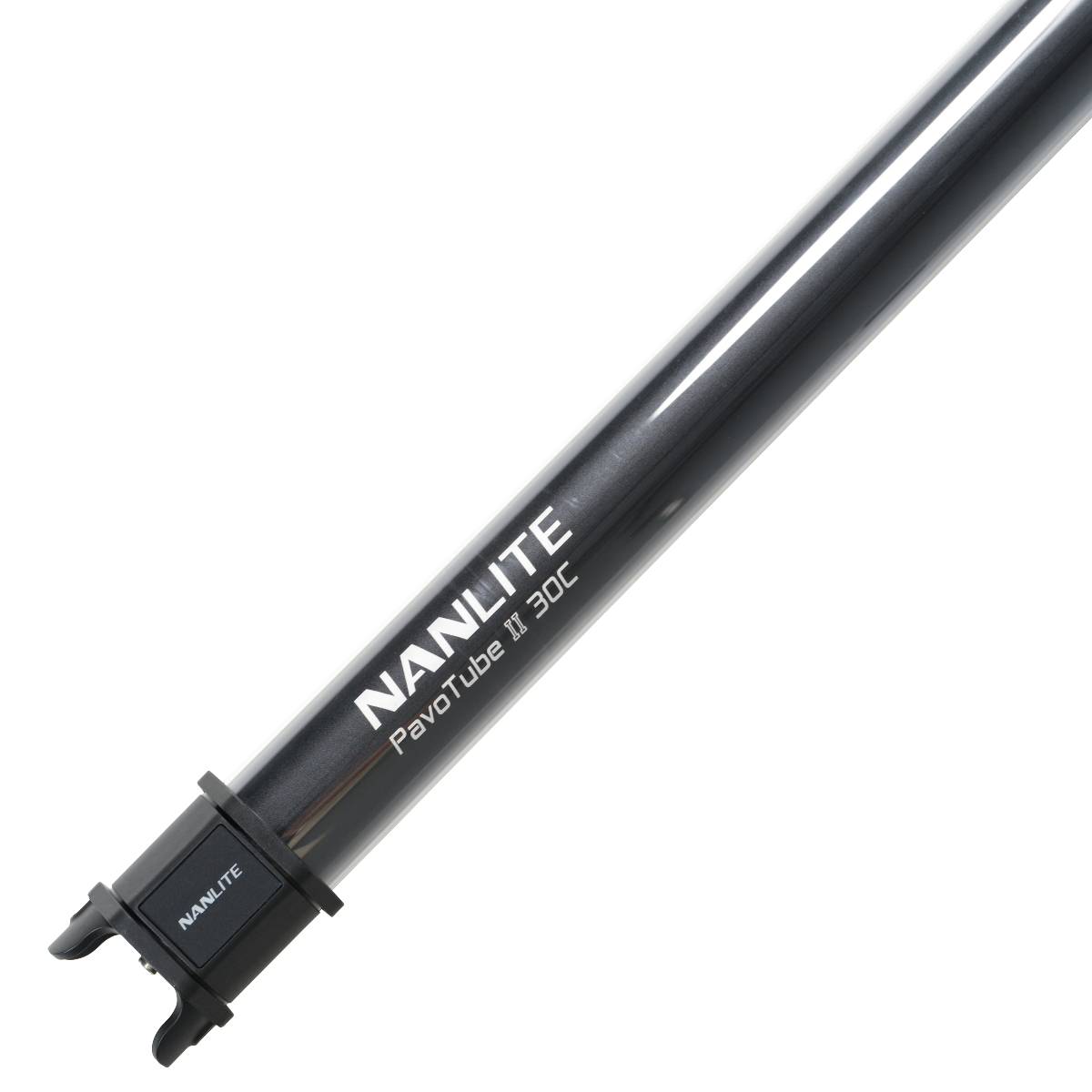 With an output of 647 Lux (60 fc) @ 1m at 5600K, 0-100 dimming, CCT and HSI modes, and 15 effects, PavoTube II 30C remains highly accurate no matter the intensity or color you have dialed-in. Delivering a CRI of 97 and a TLCI of 98, you can always have total confidence in its performance. On-board controls like the two easy-to-access knobs at the end and a new Lock button let you make adjustments quickly and prevent accidental changes. It can run for over 2.5 hours at 100% brightness on the internal battery, and up to 29 hours at 1%. PavoTube II 30C can also run on external batteries that have a D-Tap port with the CB-DT/DC adapter cable (sold separately) or run continuously on AC with the included charger. A padded carrying case, steel safety wires for hanging, and a transparent mounting clip with 1/4""-20 receivers are also included, and an entire ecosystem of compatible Nanlite mounts and modifiers are available separately in the standard T12 size.