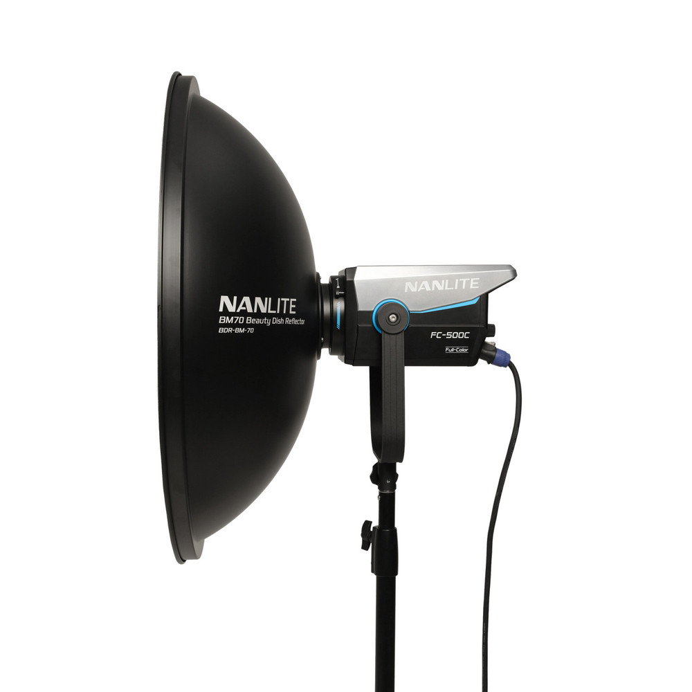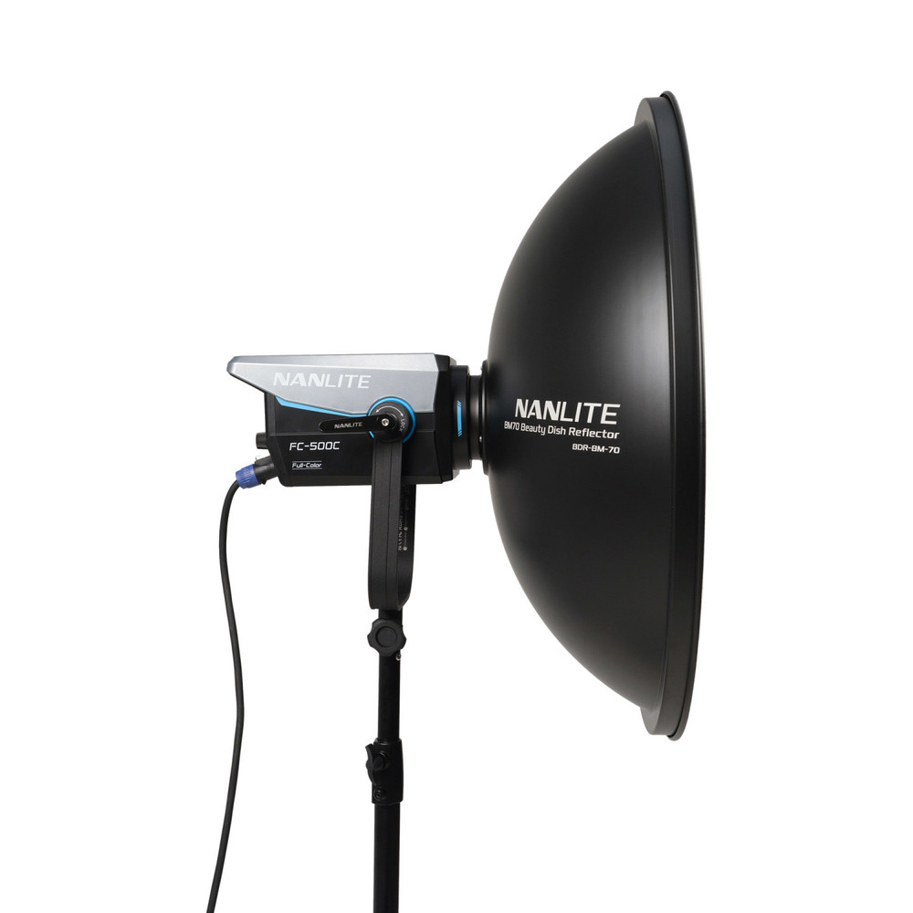 The Nanlite BM70 Beauty Dish Reflector is a specialized type of light modifier that provides attractive, soft light with a unique sharpness that's especially appealing for portraiture and fashion photography.