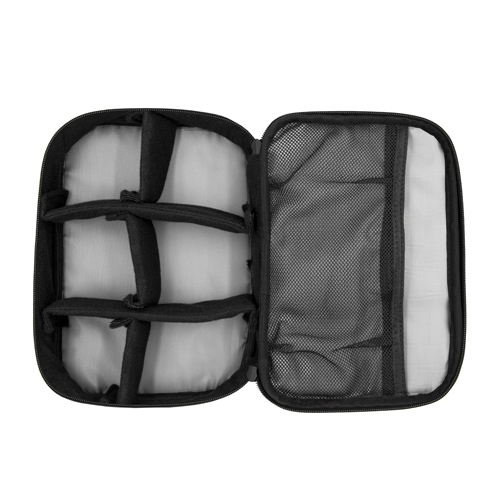 Interior Dimensions (main compartment): 9” W x 2” H x 6 ¼” D (23 cm x 16 cm x 5 cm)